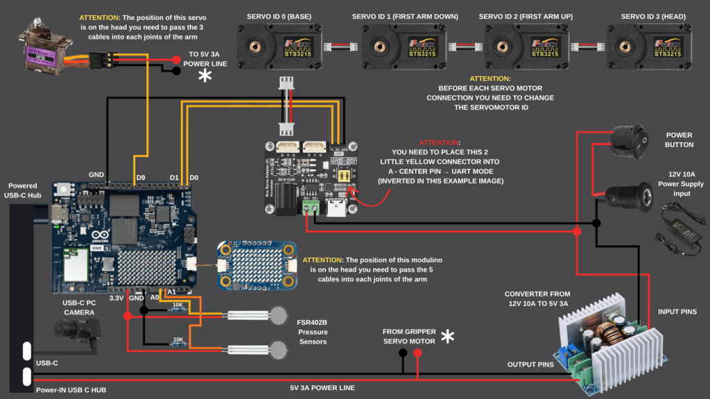 LucaDilo was able to achieve that with very affordable and accessible hardware, starting with an UNO Q. Not only does that direct the robot arm’s Feetech serial servo motors with its microcontroller, but it also performs facial recognition on the Linux side with a USB webcam. An optional Modulino