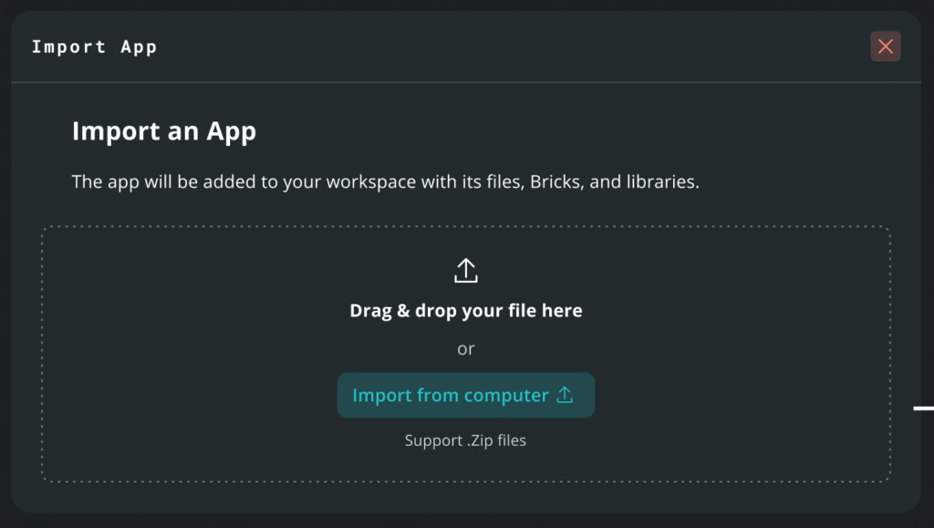 Import shared App Lab projects instantly from a .zip file