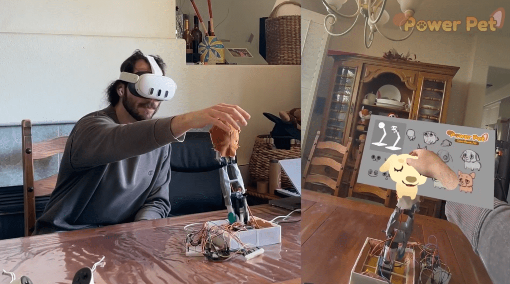 The project tackles something many of us can relate to: staying focused and emotionally regulated in an increasingly overwhelming world. But instead of adding more notifications or productivity pressure, Power Pet offers a calming presence that responds to you in both virtual reality and the real world. Pat the virtual pet on the head? The physical one tilts toward you. Step closer? Both versions respond with expressive eye contact and gentle animations.